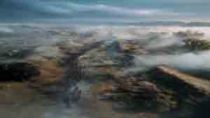 FPV 视角,第一人称高速飞行,镜头从山尖俯冲,贴泉水面掠过,螺旋擦过故居窟檐飞壁,冲破戈壁沙尘雾;随即转向切入北京手稿微观模型鸟巢纹理掠过、擦过天坛模型的城砖,全程带气流震颤与镜头晃动的动 感张力。 ...