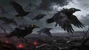 场景以一个人物开始,他的身体开始出现故障并溶解,化作无数黑色的乌鸦。乌鸦群在空中向右极速飞行,最后乌鸦群聚拢合体成一个成一个手撑着地面的狗,超写实、黑暗奇幻美学、强烈的粒子效果。 1暗黑场景,一群往左飞 ...