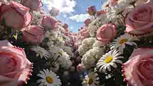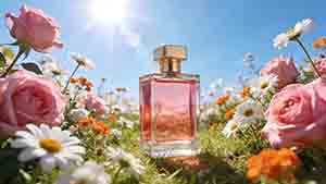 镜头全程快速推进,快速穿越一望无际的玫瑰花海,阳光照在花上,漂亮的光影投射,花是动态的,自然随风飘动,7秒左右,镜头逐渐减速,逐渐聚焦香水瓶,香水在阳光的照射下显得晶莹剔透,环绕推进。 图片提示词: *** ...